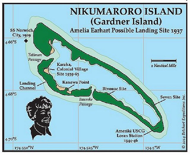 2015年6月18日:現在無人島のニクマロロ島Nikumaroro Island(旧名Gardner Island)では、1989年の調査「Niku I」以来8回目になる「Niku VIII」現地調査が島と海中で行われている。調査は「歴史的航空機の発見を目指す国際グループ(The International Group for Historic Aircraft Recovery、TIGHAR)」によるもので、グループは「The Earhart