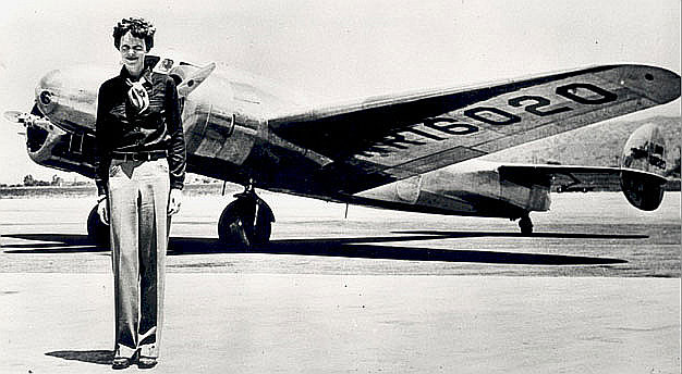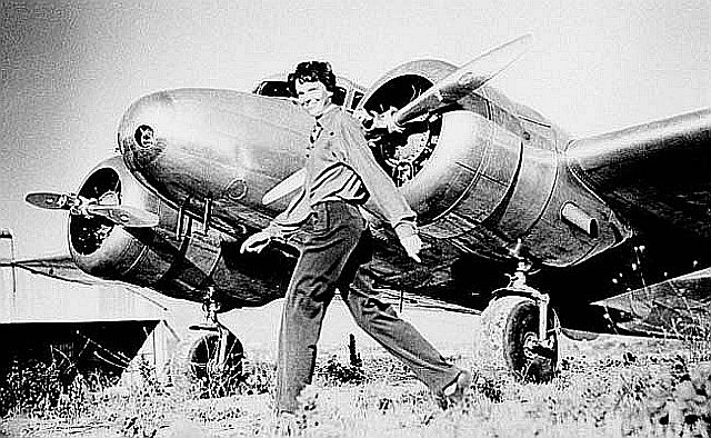 途中で海に不時着し、同乗したナビゲーターのフレッド・ヌーナンFred Noonanさん(男性:写真左)も死亡したとされている。当時すでに米国と関係が悪化していた日本海軍も、捜索に参加した記録が残っている。2010年12月21日の参照記事 第一次世界大戦では負傷兵の看護の仕事をし、その時1920年に初めて乗った飛行機が彼女の運命を変えた。彼女は1923年にライセンスを得て、1928年世界で最初の女性大西洋飛行、1932年には最初の大西洋女性単独飛行、1935年には世界初のホノルル、カリフォルニア女性単独飛行を記録している。1930年から35年の間だけでも7つの新記録を作り出し、世界一周を最後の記録への挑戦としていた。