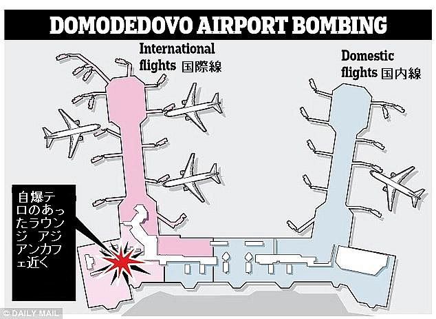 (Domodedovo International Airport)の国際線エリアの到着ロビーにあるアジアンカフェ近くで、現地時間の午後4時32分に自爆テロと思われる大爆発が発生した。死者は少なくとも英国人2名を含む35人に及び、負傷者は170人以上(86人が病院送致され、46人は重態)で、被害者の多くは到着ロビーに出迎えに来ていた人。ドモジェドヴォ空港にいた日本人がTwitter(ツイッター)に惨事の報告を書き込みしており、「モスクワ ドモジェドヴォ空港で出張者の出迎えをしていたら爆発音が聴こえた。外に出たら全身に肉片を浴びた人が居る。