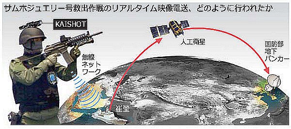 さなければならない。そうすること で、(海賊は)再びこういうことを起こす考えを起こせなくなるはずだ」とも述べたという。作戦の様子は、韓国製無線映像伝送システム「KAISHOT」で人工衛星を経由して韓国の国防部地下室の司令室へ送られていた。米国は09年4月に自国の船舶が海賊に乗っ取られた際、船長1人が人質として捕らえられる状況にありながら、特殊部隊が突入して3人の海賊を射殺し、最終的に船長を救出した。ロシアも昨年5月、乗組員23人が乗ったタンカーを救出するために艦