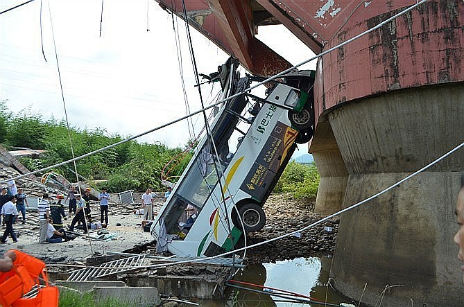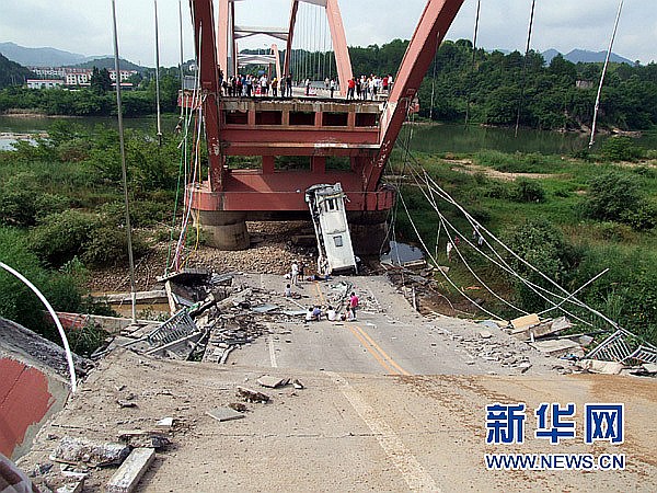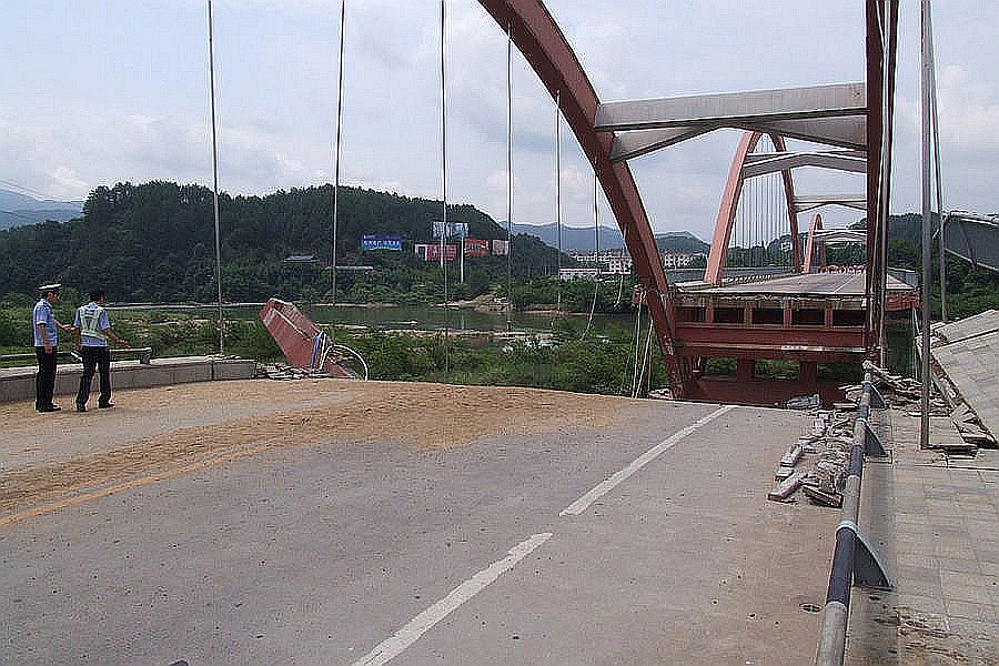 2011年7月14日午前9時ごろ、福建省の観光名所・武夷山に通じる大橋(福建武夷山公馆大桥)が崩れ落ちた。橋の上を通過中だった観光バスが墜落し、運転手が死亡、ツアー客ら22人が負傷した。崩落した「公館大橋」は1999年11月に開通。幅18メートル、長さ300メートルの同橋は、崇陽渓にかかっており、都市部と観光地区を繋ぐ重要なアクセスルートとなっていた。事故の目撃者によると、大橋の3分の1が崩れ、現場は警察に封鎖されたという