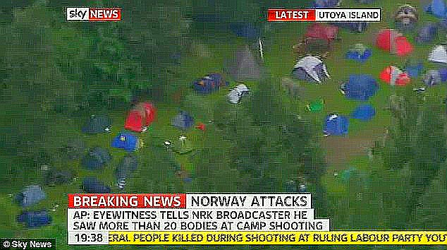 2011年7月23日:庁舎爆破と30キロ離れた島での無差別殺人の合計死亡者は92人に上ると見られている。警察は、庁舎爆破の直前、犯人が付近をうろついていた事を確認した。犯人の動機などは依然不明。島では毎年恒例のサマーキャンプの最中だった。(右下)。.Anders Behring Breivikがフェイスブックなどに残した記録からは 、キリスト教徒で保守的、狩猟とボディビルが趣味、フリーメーソンのメンバーで独身だったと言う程度しか分かっていない。捜索した彼の農場からは、大量(約6トン)の爆弾の原料になる化学肥料 fertilizer が発見されている。a Christian and a conservative. It listed his interests as hunting, body building and freemasonry.参照記事