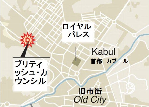 アフガニスタンの首都 Afghan capitalカブール Kabul で、2011年8月19日、イギリスの文化交流機関「ブリティッシュ・カウンシルBRITISH COUNCIL」の施設が。反政府武装勢力タリバンの自爆テロを含む攻撃を受け、ニュージーランドの兵士、地元警官8名、警備員を含む少なくとも10人が死亡し22人がけがをした。建物の前で、爆発物