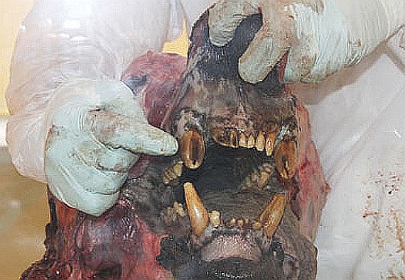 露出していた状態で、相当な激痛を抱えていたと想像でき、これでは満足な獲物の捕獲も難しく、結果的に相当空腹だったに違いないだろうと結論付けている。それが熊を、手近なエサを求めて人間に近づくという異常な行動に駆り立て、さらに性質を凶暴にさせたようだ。熊の歯はそれほど状態が悪く、襲われた4人の生存者のうち、頭をかじられたPatrick