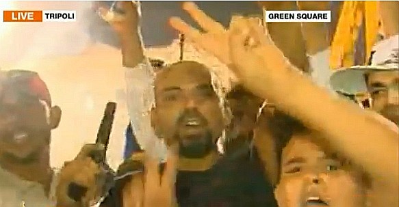 22日未明から市民は首都圏到達に歓声を上げ、花火を打ち上げて祝っている。西側から押し寄せた数千人の反政府軍に対し、意外なほどあっけなくカダフィ軍は降伏、撤退したようだ。ニュース映像人口170万