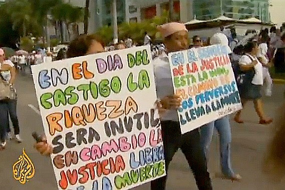 2011年9月22日:18日に教師3人が麻薬組織に殺害され、数人が負傷した事件で、全メキシコの教師数千人が太平洋岸の都市アカプルコに集結し、犯罪に無能な政府に対しデモを行った。これで影響を受けた生徒は6千人に上った。参照記事早い時期に徹底した対組織犯罪対策を打たなかったメキシコはここまで病んでいる。一部貧困層には犯罪組織を容認する風潮さえあったが、それは組織間の抗争に住民を巻き込む結果になった。今ではギャングが警察も軍も手を焼く程の組織力と経済力を持ち、取りしまりの強化は弱小になった組織を他の組織が襲うと言う悪循環を生み出す。脅迫に負けて警官をやめ、組織に入る者も出る。刑務所は定員の何倍もの犯罪者であふれ、死刑の無いメキシコでは、若い犯罪者は如何に殺されないかではなく、如何に先に殺すかに腐心し、相手に身内を殺されたものは、更なる報復を恐れて銃を手にし、ある者は自分を守るために組織に加入する。全てが悪循環に陥っている。