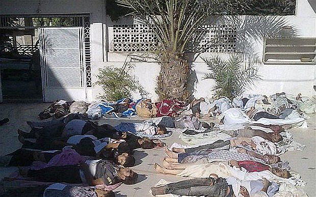 mosqueの無数の遺体を写している。Darayaは3日間の連続した攻撃により、過去には、主にスンニ派住民20万人が住んでいたこの街は26日、政府側に制圧されたといわれていた。参照記事依然として、 Aleppo, Deir ez-Zor, Idlib, Deraa, Hama 、Homs provinces.の各地でヘリや戦車による戦闘が確認されている。