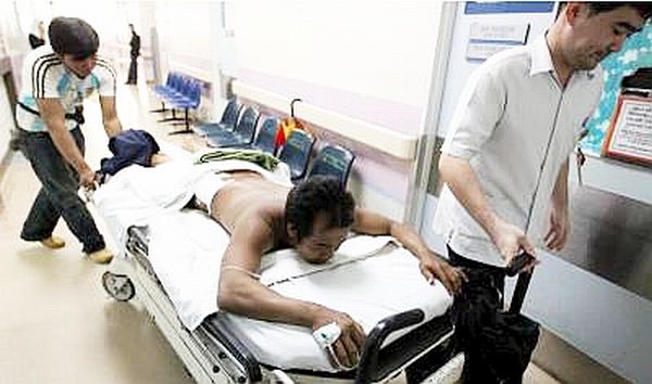 世の中危険だなと地元紙を読むと、状況は多少違い、建設作業員のパイ Pai Yaniさん:写真 は仕事現場で急に胃に痛みを覚え、Sungai Santubong川の岸に向かった。これは尿意ではなく明らかに便意で、どうやらお尻を川に突き出して用を終えたころを約2mのワニに襲われた。ワニの尾のパンチで水中に落ち、腰と肋骨を噛まれる大けがを負ったが、10分の格闘すえ、そばにあった鉄棒につかまり難を逃れた。付近では最近、14