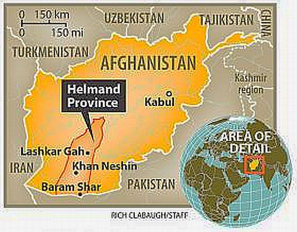 2012年8月27日:アフガンのヘルマンド州ムサカラ地区Musa Qala district:州都Lashkar Gahから北へ75キロ(またはKajaki district