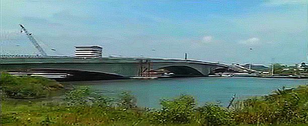 歳の少年がPasir Panjang beach.で水遊び中に、やはり2mほどのワニに太ももを強打され、仲間と30分格闘し、軽いけがで助かった。参照記事 映像つき参照記事 参照記事川岸の獲物を、ワニが尾で水中にたたき落とすアフリカの映像は見たことがあるが、アジアの川でも頻繁に起きているようだ。写真の橋は事件のあった橋のようです。
