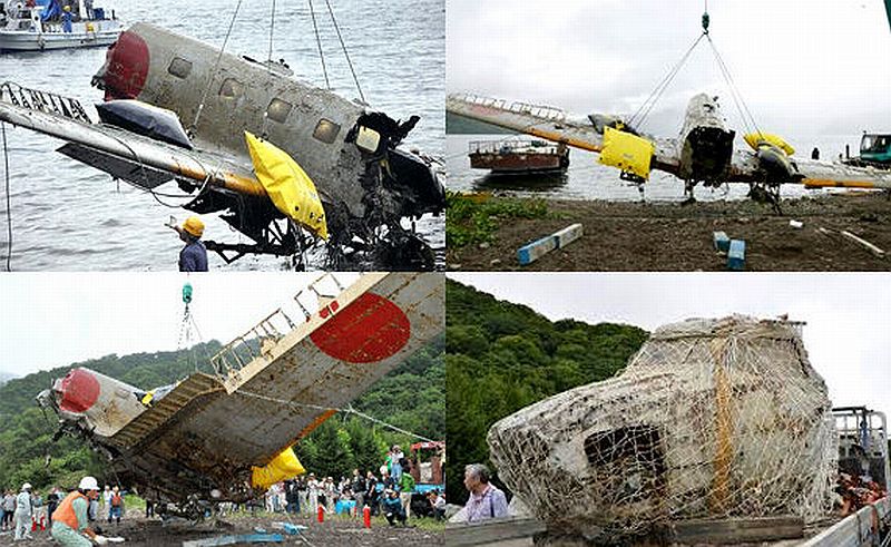 青森県の十和田湖で2012年9月5日、湖底に沈んでいた旧日本陸軍の訓練用飛行機「一式双発高等練習機」とみられる機体が青森県航空協会の有志らの手で69年ぶりに水深300m強の湖底から引き揚げられた。現存する同型機はなく、協会関係者は「貴重な航空遺産だ」と話している。 練習機は1943年、秋田県の旧陸軍能代飛行場から青森県の八戸飛行場に向けて飛行中、エンジントラブルで十和田湖の湖面に不時着し、そのまま沈んだ。引き上げられた機体は、表面の金属板がところどころ剥がれるなどしているが、