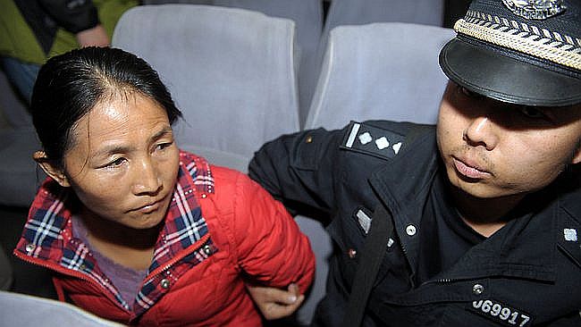 中国では、厳格な一人っ子政策、男子を求める風習、法律に対する無知や貧困、違法な利益追求、営利誘拐、労働力や売春目的の子供の需要など、複雑な要素から人身売買が繁盛している。中国では現在、児童の人身売買に関する新たな法律の制定を検討している。写真はアジト襲撃の警官と容疑者の女性 英文記事 過去の子供誘拐の記事:想像を超える人身売買 宇宙開発までする国の暗部、年間20万人の児童が行方不明 売り飛ばされる中国の児童