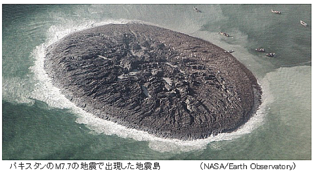 2013年9月24日午後4時半(日本時間24日午後8時半)にパキスタン南部の内陸で発生した大地震の影響で新しい島が出現していることが分かった。島では、何箇所かでメタンガスが噴出しているのが確認され、島は海面からの高さが18~21m( 60-70 feet)、広さは100-120 mX250-300 mと報告された。島に上陸しないように警告が出されているが、多数が上陸している。過去の例では、島はその後波に洗われ、消滅する可能性がある。写真上 島の映像 パキスタンで強い地震、死者少なくとも45人 マネーニュース Reuters