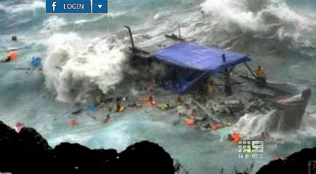 同じジャワ島沖のクリスマス島付近の海域で、オーストラリアをを目指していたと思われる難民船が沈没し、約120人と推定される乗員のうち、少なくても21人の遺体が収容され、ほとんどが女性や子供だったとインドネシア当局により9月27日報告された。一行は中東のヨルダン、レバノン、イエメンJordan, Lebanon and Yemen.からの難民と言われ、25人が救助されたが、依然多くが行方不明とされ、現在も捜索が行われている。惨劇は多くの島民に目撃されたが、荒れたl海上からの助けを求める叫びに救