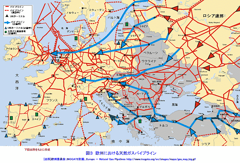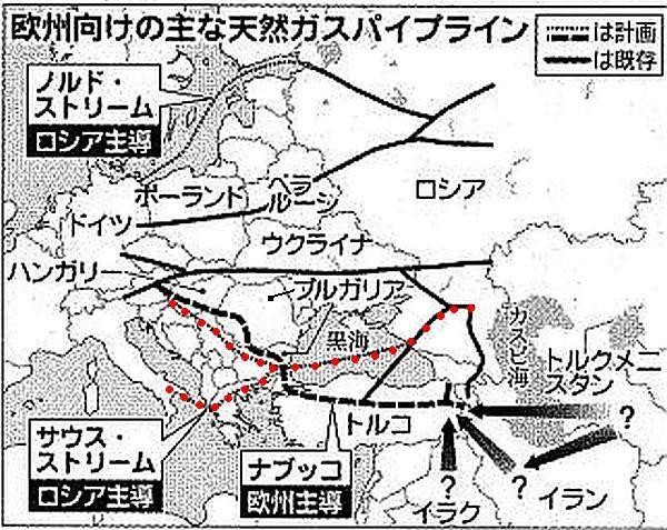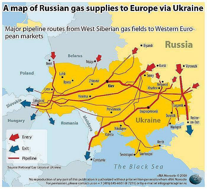 ネオナチ政党とも呼ばれる、ウクライナ超国粋主義急進派組織「右派セクター:the Neo-Nazi Right Sector delegation 」のリーダーで、北コーカサスの反ロシアイスラム勢力へも対ロシアで共闘を呼び掛けるほどの武闘派であり、プーチンが、ウクライナ暫定政府は危険な民族主義集団だという根拠になっている。ウクライナ暫定政府には、他にも右派とみられる組織があるが、この集団は過激さで際立ち、キエフにもクレムリンにも反発し、西側へ、早急な武器支援を叫んでいる。ドイツやフランスの世論調査では、国民の大多数がウクライナのEU加盟や資金支援に賛成していない。ところで、彼らが標的にするロシア、西シベリアからのガスパイプラインは、図のように無数にウクライナ国内を走り、欧州全体のエネルギーの20%を供給しているといわれる。(ロイター記事では、EUは石油とガスの約3分の1をロシアからの供給に頼っている。ガスの約40%はウクライナを通じて輸入されているとしている。ロシアへのガス依存度を軽減するため、米国からのガス輸入も検討されている。 参照記事) 過去ブログ:2014年3月EUはロシアへ制裁発動か? ウクライナ バルト海、黒海周辺を苛立たせるロシア