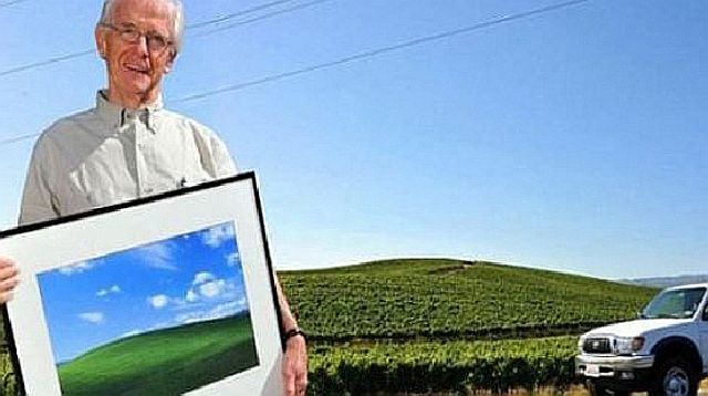 アメリカ人フォトグラファーのチャールズ・オレアCharles O'Rear氏が持っている写真は「Bliss(「喜び、幸福」の意)」という題名の上の写真で、WindowsXPの「草原」テーマの壁紙に使われている。オレア氏がカリフォルニアワイン産地として有名なナパバレーで撮影した一枚。