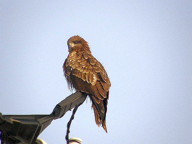 2014年3月18日:最近白い大きな鳥が飛んでくる、写真を撮りたいがなかなかチャンスが来ない。そんな時、電柱の上にトビ(トンビ)が止まっていた。