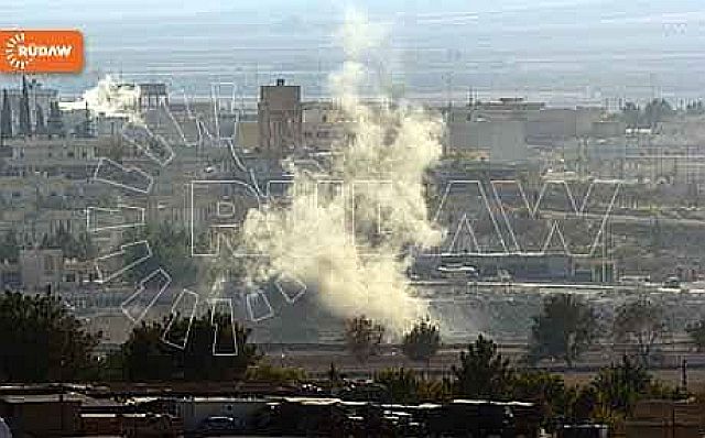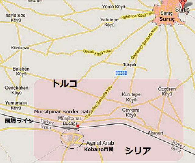 29日早朝4時ころ、国境近くに4人のISが自爆テロを行い、同時にISがトルコとの国境へ向け攻撃を開始し、トルコ側は目印になる国境に近い難民キャンプへの送電を止めたとされる。 トルコ側へ越境したISを攻撃するクルド側からの映像、映像の後半に越境したIS兵士が映っている:写真左。