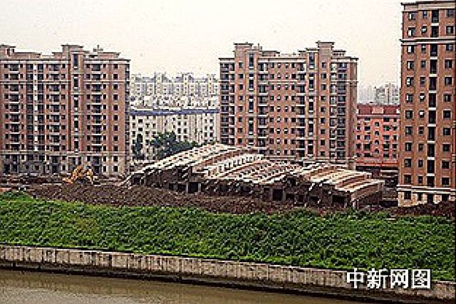 かり、やや斜めに寄りかかり止まっている。接触した部分は破損や亀裂等が起こった。同ビル群は2012年に竣工したばかり。同ビルのデベロッパー;上海心圓房地産開發有限公司は24日午後、声明を発表し、二棟のビルが寄りかかっているのは自然の沈降によって引き起こされたもので、建物の主体構造に影響はないと主張。参照記事 参照記事 参照記事