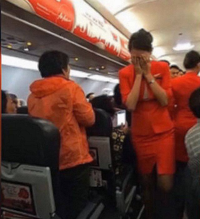 タイのバンコクから中国・南京へ向かっていた格安航空エアアジアAir Asiaの旅客機内で、乗客が客室乗務員にカップ麺用の湯をぶちまける騒ぎがあった。同機はこの事態を受けてバンコクに引き返した。2014年12月11日夕に同機がバンコクのドンムアン空港から離陸して間もなく、若い男性客が、連れの女性のためにカップ麺用の熱湯を持って来てほしいと客室乗務員に頼