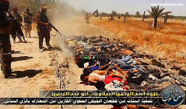 上の記事の集計はシリアだけで、イラク内でも多くの処刑の報告があり、個人的に実数は相当な人数だと想像している。最初の写真は、イラクでの集団虐殺の様子 。一番下の写真は、イラクのDiyala県で、ISに対立するイスラム組織Naqshabansiya Organizationが、IS兵員を処刑したとされる写真 参照記事 参照記事 参照記事 処刑記事と映像 映像:スンニ派では無いとして、イラクで処刑されるシリアのトラック運転手