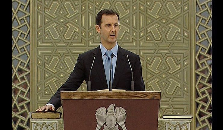 シリアのバッシャール・アル=アサドBashar al-Assad大統領は2014年6月の選挙で、中部、北部で88.7%の得票率で今後7年の3期目の大統領職に就任し、「憲法とシリア国民を守ること誓う"I pledge to respect the constitution and protect the people of Syria,"」と2014年7月16日宣誓文をメディアに公表した。「(2011年3月の暴動で)彼らは革命を求めたが、(私を支持する国民は)常に革命的に振る舞い、(彼らに対し)勝利したことを私は称賛する"They wanted a revolution, but you have been the real revolutionaries. I
