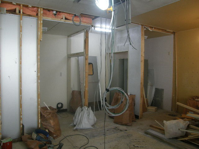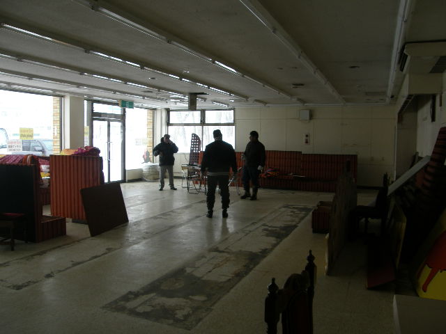 日内で出来上がるのかと不安がよぎったこともしばしばだった。手がける前の状態が左で、電気も来ていない、つまり、暖房も発電機でなければ作動しない状態で、建物への電気の引き込み工事申請まで必要だった。結果からいえば、保健所(大事な営業許可に絡む)、北電(電気の引き込み)、消防(火災報知機の店内移動のため検査が必要)、すべての仕事納めが12月26日までで、何が何でもその前までに終わらなければならならなかった。