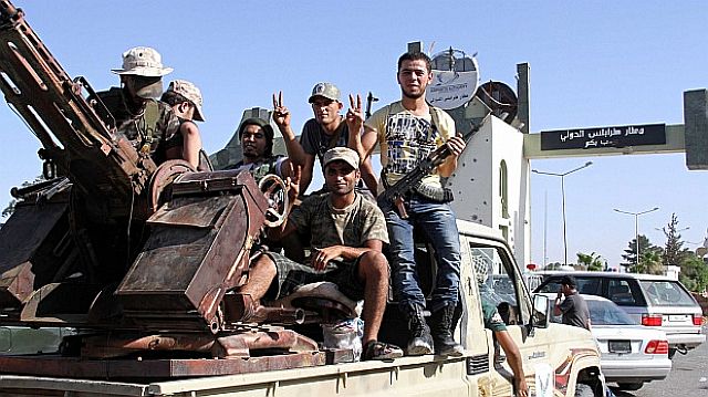 この組織は革命組織を自称する「リビアの夜明け Libya Dawn」で、リビア東部を拠点にするイスラム過激組織と言われ、2014年8月にトリポリを占拠し、その際には、現リビア政府を否定し、その替わりにリビア東部に公式な政府を設置するように主張していたとされる。写真右は、その当時、8月の組織の写真で、リビア紛争当時の武器が、リビア国内には無数に残っている。トリポリの住民は、街から逃げ出したいが、逃げ出せば家財は盗まれ、家は破壊されると嘆いている。 参照記事
