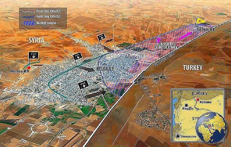 トルコはシリア北部に安全地帯、飛行禁止区域を確保し、シリア政府軍、およびISからの攻撃から国境ライン、クルド、および反アサド組織を守る構想に固執したが、コバーネKobaneに限定すれば、相手はシリア政府軍ではなく、国際規約も無視するISであり、彼らは空軍を持っていない。トルコとすれば、飛行禁止区域を設け、無視されたら一気に越境空爆で反撃に出ようと考えたのかもしれない。
