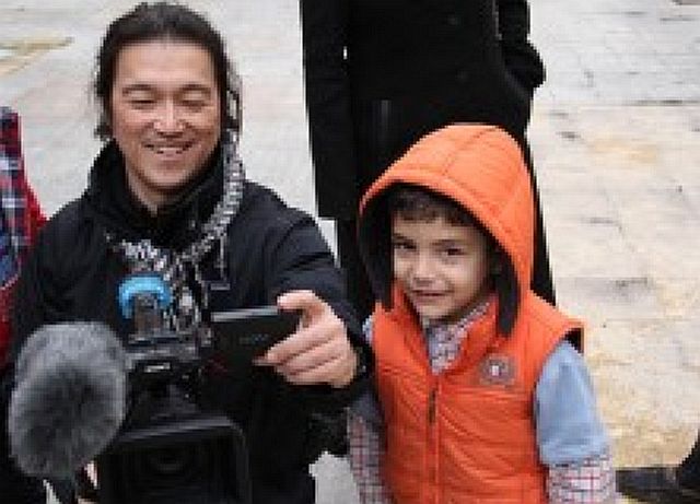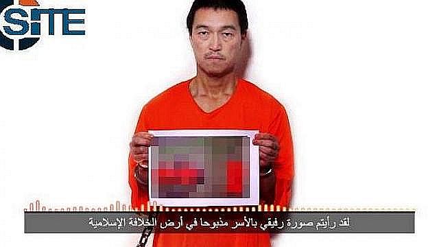 2015年1月25日:過激派組織「イスラム国」に拘束された仙台市出身のフリージャーナリスト後藤健二さん(Kenji Goto47)の画像が24日夜、インターネット上に公開された。後藤さんは手に写真を持っており、千葉市出身の会社経営者湯川遥菜(はるな)さん(42)が殺害されたとみられる場面が写っている。安倍晋三首相は25日未明、「このようなテロ行為は言語道断であり、許し難い暴挙だ。強い憤りを覚える。断固として非難する」と首相官邸で記者団に語った。英文記事インターネットで公開されたビデオでは、「イスラム国」の黒い旗などは映っていないが、送信したSITE( SITE Intelligence Group)は過去にもISのビデオを公開しており、後藤さんの家族にもEメールでビデオが送信されたといわれる。映像は、日本時間24日午後11時過ぎに公開された。「後藤健二の家族と日本政府が受け取ったメッセージ」と題する2分52秒の内容だ。上の写真は、SITE側の公表で、ぼかしも彼らが入れたようだ。記録映像:残酷な画像を含みます。