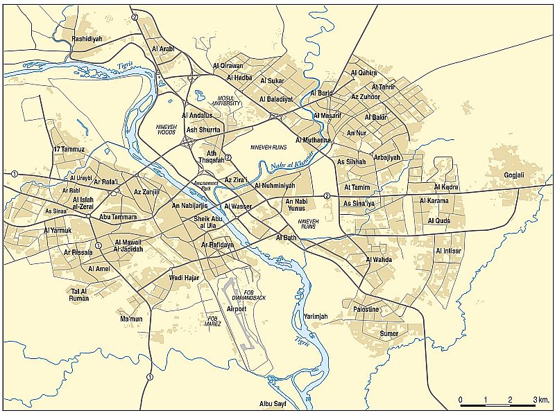 2015年1月24日:モースルの中心部へ迫る勢いのペシュメルガに対し1月23日ISは、市内のモスクに住民を集め、聖職者preachersが信者に戦闘への参加を訴えていると報道された。ぺシュメルガ Peshmergaはモースルする周辺を攻略し、西と北部から迫り、初めて市内中心部へ迫撃砲 mortar fireの攻撃を行ったといわれ、このことは、中心部へ数キロまでぺシュメルガ Peshmergaが迫ったことを意味する。ISは強制的に、住民の男女子供を問わず、15歳以上を戦闘に参加させるようだ。モースルにはアラブ系住民も多数混在することから、クルド側は、アラブ対クルドの対立への発展を懸念し、イラク軍(アラブ系)の積極的な支援、地上戦参加を要望している。現在イラク軍は、周辺への空爆で参加している。ぺシュメルガ Peshmergaによる21日からの攻撃で、ISの軍高官2名が死亡したといわれ、ここ数日で激しい衝突が起きるとIS側が発言しているが、ぺシュメルガ Peshmergaは、しばらくは陣地の構築と、補給態勢の準備に時間をかけるだろう。参照記事 参照記事
