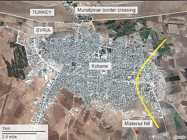コバーネKobaneの主力部隊YPG( Kurdish People's People Units;シリアクルド人民兵)は2015年1月19日、市の南東部にある丘 Mishtenur hilltopをISから奪還したと報じられた。丘は市を見渡せる位置にあり、ISはここから砲撃を繰り返していたが、YPGの夜を徹しての攻撃でISは、11人の遺体と武器を残して敗退した。この結果、ISの支配地域は市の東部15%ほどで、東部に集中していると思われる。