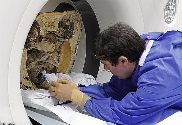 は除去されており、内視鏡検査で、内臓の場所に中国語が書かれた紙の小片を発見している。現在はハンガリー・ブダペストの国立自然史博物館へ移送され、5月まで展示され、その後ドレンツ博物館に戻される。この博物館は、ほかに多くのミイラを収蔵している。詳細な調査は続行中とされる。 参照記事 中国記事 参照記事 博物館のニュース映像