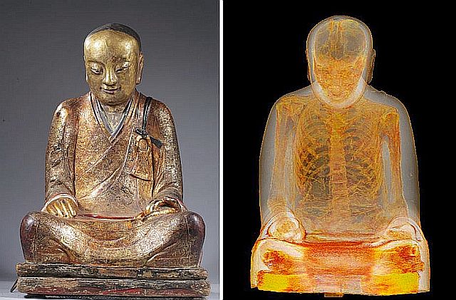 オランダの、考古学資料を多く所蔵するドレンツ博物館Drents Museum(オランダ ドレンテ州アッセンAssen、Drenthe)が収蔵していた、中国の11~12世紀の仏像を、アメルスフォールトAmersfoortにあるメディカルセンターでCTスキャンCT scan と内視鏡endoscopyによって調査したところ、LiuQuan(中国記事では、宋朝高僧柳泉:宋朝の高僧 柳泉か?と記事になっている)として知られる仏教の高僧Buddhist master のミイラが内部に収められていることが発見された。以前から仏像内に僧侶の遺物が収められていることは知られていたが、科学的な検査の結果、ミイラの内臓