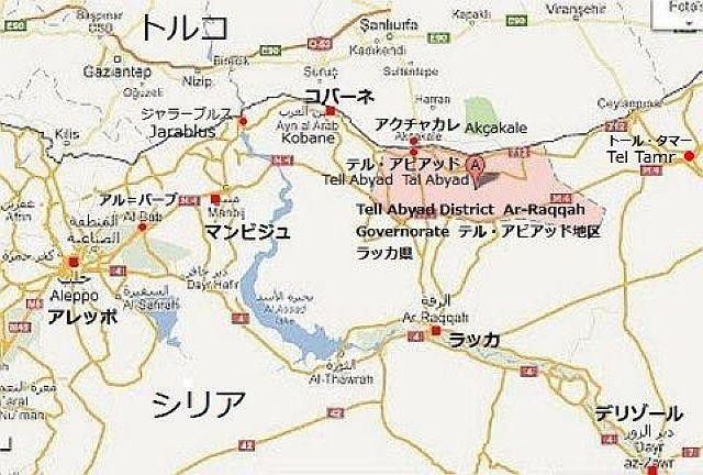 クルド軍は、本来アサド政権と戦う穏健派反政府軍とともにコバーネKobaneを奪還し、すでに周辺の215の村を解放した。その戦果は、ISの最も西の前線、アレッポ県 Aleppo provinceへの補給ラインに支障を招き、クルド側は現在、トルコに通じるISの主要な補給陣地であるマンビジュManbij(Minbij)、 ジャラーブルス Jarablus, テル・アビアッドTell Abyad(Tal Abyad)に向け戦闘を拡大している。過去の記事から、アレッポ方面の補給基地がマンビジュで、前線基地がアル・バーブと判断できる。ISの最も西の陣地であるアル・バーブal-Babでは現在すでに、ISは戦術的な撤退を余儀なくされているといわれ、住人がIS兵員の減少を確認している。