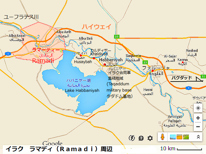 し、今後水不足は更に拡大するといわれる。アンバル県は乾燥地で、気温が上がりつつあるなか、ISが仕掛けた「水戦争"water war"」の問題はかなり深刻で、過去にISは、ディヤラ県Diyali provinceでも長期にわたりダムを閉じて、農作物などに大きな影響がでたと言われている。下の地図の左は、過去のイラクの人口密度分布ISはまた、ラマディ北部サラーフッディーン県Salahuddin( Salah il-Din)にあるサルサール湖Lake Thartharのダム制圧もたくらんでいるようだと言われている。これは、チグリス川の水量を利用した長さ約100キロの主に灌漑用の貯水湖で、サマッラSamarraの調整装置と連動している。参照記事