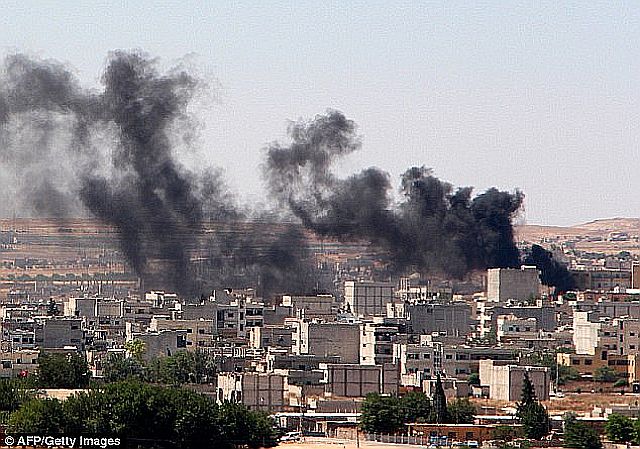 ISは物資や兵員をトルコ国境から得ており、また石油の密売はトルコ経由と言われていることから、クルド合同軍がトルコ国境沿いを制圧したことはかなりの打撃とされる。ISの反撃は予想されていたが、クルド軍には有志国軍、シリア政府軍にはシリア空軍がいることから、ISの攻撃継続は困難なのではと個人的に思う。ラッカRaqqa北部の国境の街テル・アビヤドTell Abyad()は最近クルド側が解放し、住民が戻りつつあると言われ、コバーネにも住民が街の復興に着手している。シリア政府軍は、ISに包囲される中、ハサカ市Hsakkahとデリゾール市Deir ez-Zor 近郊の飛行場を死守している。写真下は、再びISの攻撃を受けるコバーネ。 参照記事 英文記事 英文記事 英文記事 過去ブログ:2015年6月悪化するばかりのシリア、イラク 無差別攻撃を繰り返すシリアは分断国家になるのか、、。 地獄の沙汰も金次第 イラク シリアのクルドはIS撃退2015年6月27日:非政府組織(NGO)「シリア人権監視団」によると、ISが占拠したコバーネのいくつかの地区の支配を、クルド人民防衛部隊(Kurdish People's Protection Units、YPG)が奪還した。クルド人活動家のルディ・モハマド・アミン(Rudi Mohammad Amin)氏はAFPに対し「コバーネは再びYPGの支配下に置かれた。ISの戦闘員が多数、死亡または負傷した」と述べた。 シリア人権監視団によると、ISはコバーネで少なくとも174人の民間人を殺害したという。参照記事