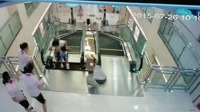中国中部・湖北(Hubei)省荊州(Jingzhou)市のショッピングデパート「Anliang荊州」で2015年7月26日日曜日の午前10時9~10分、エスカレーターを利用していた男の子連れの女性(30)が、突然床が抜け落ちてできた穴に転落し、死亡する事故が起きた。武漢晩報が2015年7月27日、報じた。男の子は体半分が穴に入った状態の母親によって前方に押しやられ、そばにいた店員に引っ張られて事なきをえたが、エスカレーターはその後も運転を続け、店員の一人が女性の手を一瞬つかんだものの、数秒後に母親は床下に姿を消した。消防隊は4時間以上かけて女性を救助したが、すでに息絶えた状態だったと、同紙は伝えている。 また同紙は匿名の情報筋の話として、エスカレーターは直前にメンテナンス作業が行われたばかりで、作業員がカバーをネジで固定し忘れていたと伝えている。監視カメラの記録 予備映像 参照記事 英文記事