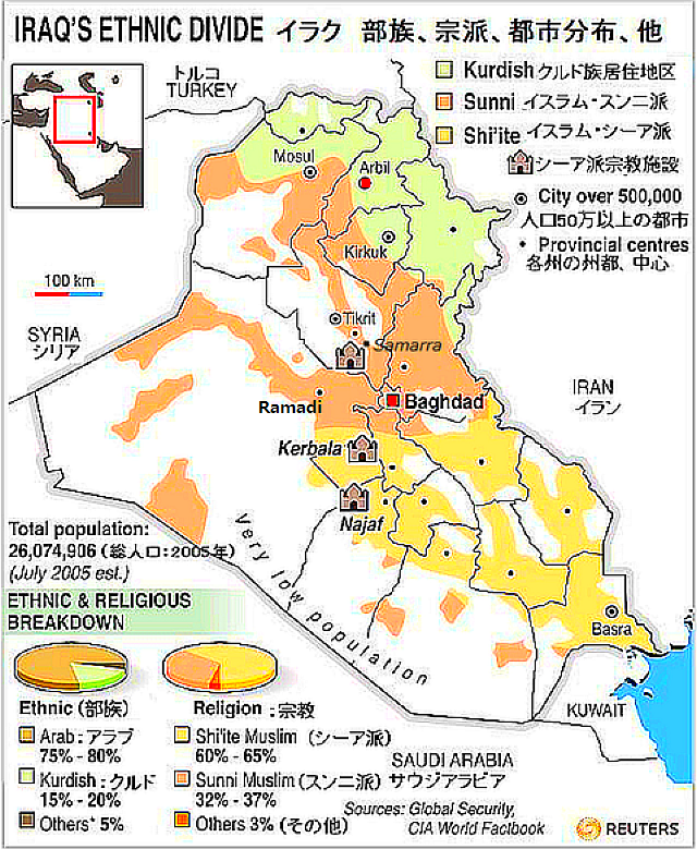 しかし、このような米国主導とも見えるイラクでのIS攻撃に対し、周辺のスンニ派部族からは不満の声が出ている。スンニ派部族への武器支給などがされないため、反ISスンニ派部族は常にISの脅威にさらされているからで、米国は武器支給を2年以上放置していると非難している。これは、シーア派イラク政府が、アンバル県のスンニ派を警戒していることが最大の原因だろう。また、スンニ派部族の一部はISに参加しており、ISへの武器の流出を懸念していると思われる。イラク内部には、米軍の支援を受ける一方で、イラクへの米軍の介入に反発する声もある。イラクには、フセイン政権崩壊後、アルカイダとの紛争で、米国がイラク全土を戦場にした記憶が残っているからだろう。結果的にアルカイダは弱体化したが、反発したスンニ派が、イラクにISを招く結果になったと言われている。イラクにとって今後、スンニ派部族とクルド人地域の自治権は大きな課題になり、同時に各地域の石油などの地下資源の利権問題も浮上してくる。国土の半分以上をスンニ派が占めるイラクに於いては、シーア派主導の統一国家は非常に困難に思える。 参照記事 過去ブログ:2015年4月爆破テロ相次ぐ首都バグダッド、ラマディ陥落か?イラク 2014年6月イラク全土に戒厳令 過激派北進は石油施設狙い? 6月追記:日増しに複雑になるイラクの状況 2013年12月クルド自治政府がトルコへの原油輸出計画 2009年2月バグダッド連続爆破とスンニ派覚醒評議会Sunni Awakening CouncilとISI