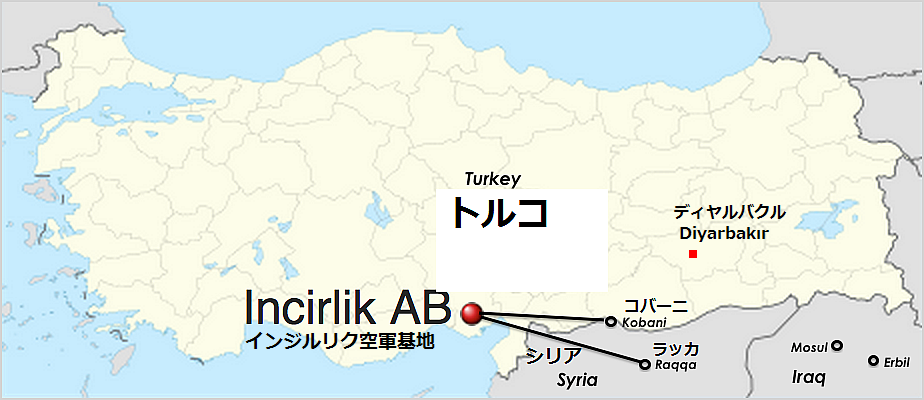トルコ軍が7月24日、国境沿いにあるシリア領内の過激派組織「イスラム国」の拠点3カ所を、トルコ南東ディヤルバクルDiyarbakırを午前3時12分に離陸したF16戦闘機3機が、24日3時40分から13分間に渡りISの陣地などを空爆したと首相府が発表した。同日午前4時24分に帰還したジェットは、この作戦でIS兵員35人を殺害し、重要な施設を破壊したと報告されている。トルコ内のクルド勢力へのけん制と国境沿いのクルドの弱体化を狙い、これまでISの行動を黙認していると言われたトルコだが、これをもって、2015年7月24日、トルコがISへ参戦したと見ていいだろう。22日、米国とトルコの両大統領は電話会談し、トルコ政府は、米軍が空爆のために、トルコ内のインジルリク空軍基地(Incirlik Air Base)などの空軍基地を使用することを承認したとされる。このことは結果的にアサド政権を利することになるので、トルコはこれまで、米軍の恒常的空軍基地使用には否定的対応だった。今後米軍は、迅速にISに対する空爆が可能になり、また、これまでのイラクやヨルダン、湾岸諸国から飛来しての監視体制や情報収集もこれまで以上に迅速に行われる。地図は、トルコの空軍基地の位置と、シリアのコバーネKobane、ラッカRaqqaとの位置関係 トルコ国内ではトルコ警察が24日、過激派組織「イスラム国」とクルド人の過激派組織PKK、極左翼組織「革命人民解放党・戦線(DHKP/C)」のメンバーを対象とした一斉摘発を13県で行い、これまでに計251人(16の県で300人とも)を拘束した。映像 参照記事 現地記事 英文記事 英文記事
