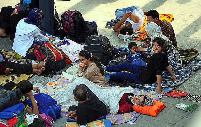 ar II)以降、最大といわれる移民危機に対応するため、欧州各国は四苦八苦している。写真上2枚は難民キャンプrefugee campと化したブダペスト駅 写真下は、オーストリアを経由して、ハンガリーから8月31日、ドイツのミュンヘンに到着した難民。ドイツ当局は先週、シリアからの難民に関して受け入れ拡大を決定している。