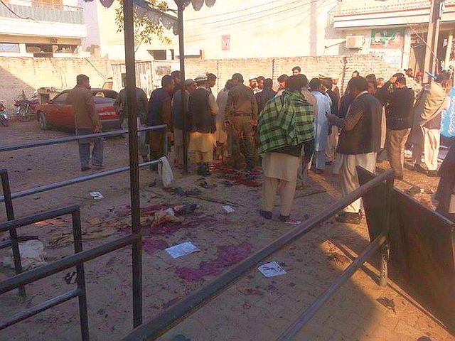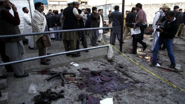 パキスタン北西部マルダンMardanにある政府庁舎の入り口で現地時間2015年12月29日、爆弾を身に着けた男が自爆して少なくとも市民26人が死亡し40~70人以上が負傷、現地の警察は、北西部で行われている過激派に対する軍の治安作戦への報復の可能性があるとみて調べている。12月初め、マルダン地区の治安軍の作戦で、16人の違法滞在のアフガン人を含む327人の反政府活動の容疑者が逮捕されている。