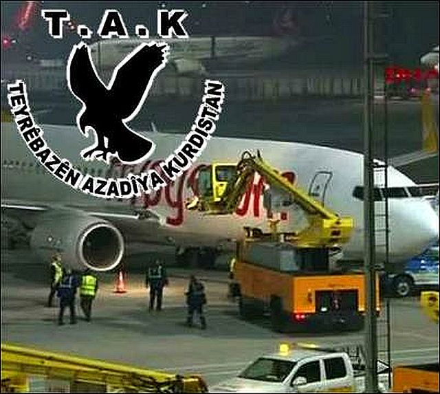 2015年12月27日:トルコ最大都市イスタンブールのサビハ・ギョクチェン空港Sabiha Gokcen airportで23日に飛行機の清掃員2人が死傷し、飛行機5機が損害を受けた爆発で、クルド系武装組織「クルド解放のタカ(TAK: Kurdistan Freedom Hawks,Teyrêbazên Azadiya Kurdistan)」が26日、「迫撃砲で攻撃した」と犯行を認める声明を出した。TAKは、非合法組織「クルド労働者党(PKK)」の関連組織。トルコ治安当局の対PKK作戦に対する「報復」としている。ロイターは、TAKとPKKは過去に関係したが、その後分裂したと報じている。トルコ政府とPKKの停戦は、2015年7月に事実上破棄され、現在の関係は数十年続いた対立関係に逆戻りしたとされる。 参照記事 英文記事