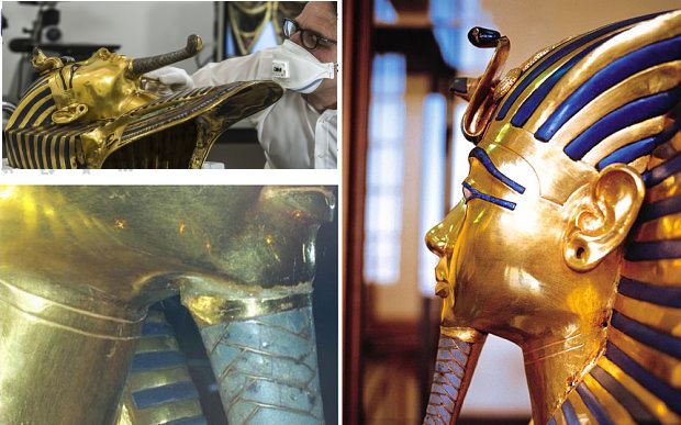 エジプトの首都カイロ(Cairo)の考古学博物館(Egyptian Museum)で1922年に発見され展示されている3300年前の古代エジプト王ツタンカーメン(Tutankhamun)の「黄金のマスク」のあごひげが雑に修復された問題をめぐり、博物館の職員8人が懲戒委員会にかけられることになったと、2016年1月24日、当局が明らかにした。