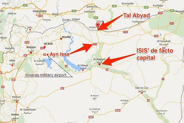 シリアでの戦闘が、2014年1月からISの首都といわれるラッカRaqqah(Al Raqqa)への総攻撃に向かっている中、改めて位置関係や道路図などを記載する。すでに、米軍、有志国軍が支援するクルド軍YPGがアイン・イッサAyn Issaまで南下して制圧しているとされ、攻撃はラッカに向け