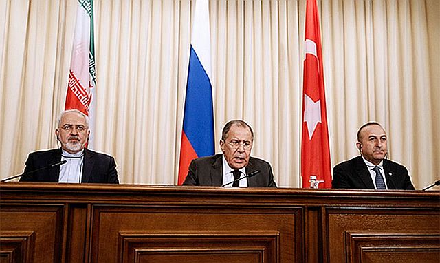 2016年12月28日:12月20日に行なわれたモスクワでのロシア・イラン・トルコ外相会談でロシア、イランのシリア支援の強化が確認され、その後の「モスクワ宣言Moscow Declaration」に従い、本来アサド政権復活を望んでいないトルコは、ロシアとイランの支援を受けたアサド政権軍によるアレッポ制圧を渋々ながら受け入れた。トルコを押さえ込んだロシアのシリア覇権は確実になり、同時に、トルコのエルドアン独裁体制もロシアに補完されたことになる。アンドレイ・カルロフ駐トルコ大使が12月19日トルコで暗殺されたことで、エルドアン政権が暗殺やクーデターの黒幕とする、米国に事実上亡命しているトルコのイスラム指導者ギュレン師(75)支持派、トルコ国内の分離独立主義PKK、さらにアサド政権を脅かすシリアの反体制派、IS全てがトルコ、ロシアの共通の敵となっても不思議は無い状況と成った。