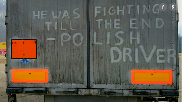 遺体で車内から発見された運転手Lukasz Urban氏:左は、ナイフで刺され銃で撃たれてはいるが、トラックがハイジャックされた後もしばらく生きており、顔などの負傷した跡から、ぎりぎりまで、ハンドルを守ろうと相手容疑者が負傷するほどかなりの抵抗、あるいは暴走を邪魔しようとしたのではといわれて