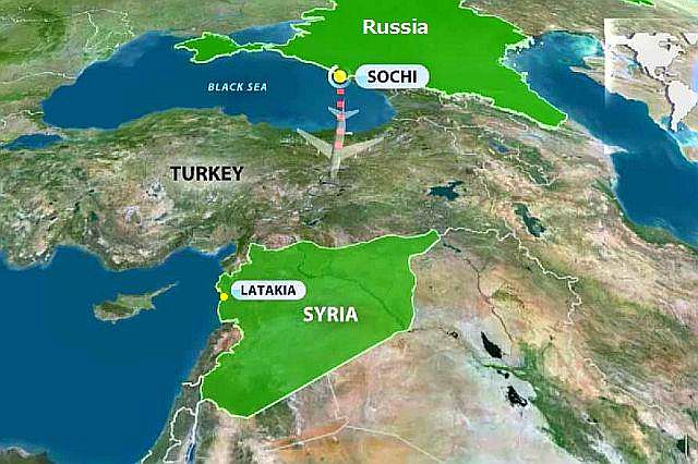 現地時間2016年12月25日午前5時20分(日本時間同11時20分)ロシア南部ソチSochiを飛び立ち、シリアに向