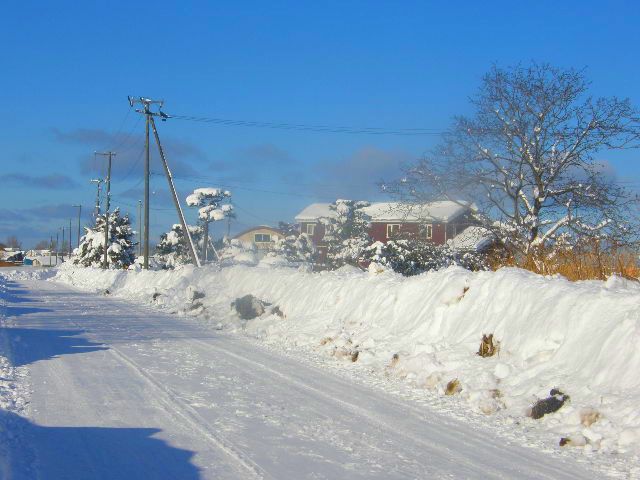 方ないが、一度に降られるとお手上げで、まじめに買い物用のスノーモービルがほしくなる。車の横に見える垣根の中が鳥たちの餌場で、この中までは雪が積もらないので、中はスズメたちでにぎわっている。午後には、いつものキジのカップルも来て、スズメを押しのけ、すごい勢いで食べて飛び立っていった。だいぶ空腹だったのだろう。