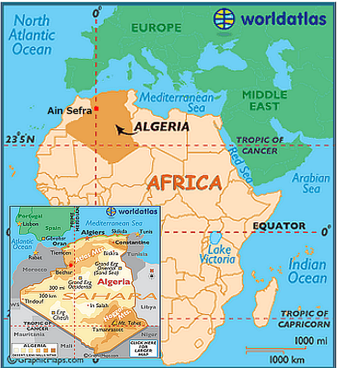 英国紙などによれば、アフリカ北部、アルジェリアAlgeriaの世界最大の砂漠、サハラ砂漠Sahara Desertにあるアイン・セフラAin Sefra(Aïn Sefra)は「砂漠の扉」の異名で知られ、夏季には気温が摂氏50度以上に達するのに対して冬は零度前後まで下がる。